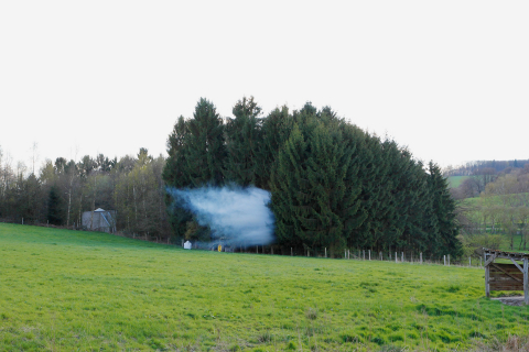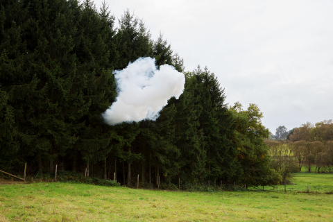 Bettina Khan0s Wolke ›im Tal‹ ist die wohl flüchtigste Arbeit im Hasselbach-Werkhausener Tal. Man mag behaupten, sie ist auf besondere Weise antiautorität. Den Wipfeln entschwebend erscheint sie skulptural – luftig gezeichnet von ihrer ganz eigenen Materialität. Sie erscheint im Prozess – immer wieder aufs Neue und immer wieder neu. Nie ist die Wolke sich selbst gleich. Und insofern erscheint die Wolke ›im Tal‹ sich selbst immer erst einmal als Idee und erst in zweiter Instanz als die Erscheinung im Volllzug. Die Wolke ist nicht, sondern wird un vergeht im selben Moment. Die Wolke ist kein Gegenstand. Sie ist ein Spiel mit der Vorahnung und des Abschieds. Und so wirft der Blick der Betrachterin, aus einiger Entfernung, immer neue Vorahnungen voraus in dei Dichte der Wipfel. Aus diesen heraus erscheint die Wolke plötzlich, aber andächtig im Tal, sie schiebt sich in den Zwischenraum des Blickens und erscheint wie ein Schleier vor den Wipfeln, über dem Gras, unter dem Blau, dem Weiß, dem Grau des Himmels. Der Blick ist außer sich und erkennt sich dabei in den Schleiern der Wolke. Er erkennt sich in seinem unbedingten Maß. In der flüchtigen Beziehung von Wolke und Blick gibt sich Bettina Khanos Arbeit am nachdrücklichstenin ihrer Prozesshaftigkeit zu erkennen – einer Prozesshaftigkeit, der man sich nähert und von der man sich entfernt. Die Wolke lässt sich im wahrsten Sinne Zeit in ihrem Flug über das Tal. Sie lässt der Betrachterin Zeit, sich für den Zeit-Raum einiger Minuten einzurichten in der Gleichzeitigkeit von Werden, Sein und Vergehen. Und dabei ist die Wolke so ungemein leicht.Sie erscheint neben dem Wäldchen oder taucht es in Nebel, sie abhängig vom Wetter, aber vollkommen autonom in ihren eigenen Grenzen. Die Wolke ›im Tal‹ ist verortet, aber dabei nicht einem bestimmten Raum zugewiesen. Vielmehr erlaubt sie an diesem ihr eigenen Ort dem Tal überhaupt erst, in seiner ihm eigenen Räumlichkeit erscheinen. Ephemer entschwindet sie dem Wäldchen und wird Raum stiftend ihre eigene Verhältnismäßigkeit. Zwischen Wald und Lichtung, zwischen Pfad und Himmel wird sie sich schleierhaft. Und darin ist sie resonant. Sie verhält sich nicht integrativ oder konstrastierend zur sie umgebenden Landschaft. Vielmehr läßt sie sowohl ihre eigene als auch die Verortung ihrer Betrachterin auf eine besondere Weise spürbar werden. Gerade zwischen Integration und Kontrast, jenseits von Harmonie und Ganzheitlichkeit werden beide zu ihren gegenseitigen kraftvollen Resonanzräumen. Die Wolke erscheint und lässt erscheinen. Die Wolke verschwindet nicht, indem sie sich auflöst. Sie verschwindet in sich selbst, als hätte es sie nie gegeben.