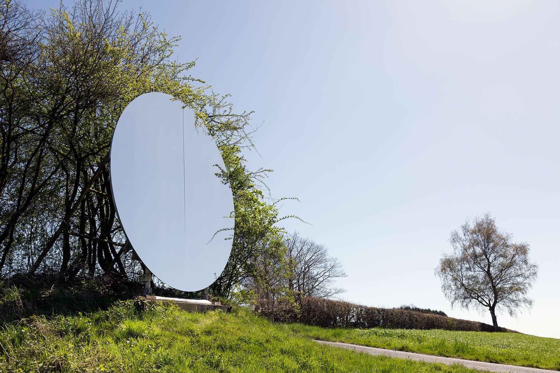 Der ›Berg-Teil‹ der Installation befindet sich in einer Entfernung von etwa 400 m auf einer Anhöhe nord-östlich des Steinkreises. Diese eigenartig schimmernde und ihre Erscheinung manchmal rasch verändernde Fläche ist ein runder Spiegel mit einem Durchmesser von 3,7 m. In diesem kann man, je nach Standort des Betrachters vor dem Spiegel, nicht nur sich selbst und die gegenüberliegende Talseite sehen, sondern auch den stetig wechselnden westlichen Himmel wahrnehmen. Durch die Reflexion dieses Geschehens wird der Spiegel selbst zum Chamäleon, wenn sich seine Oberfläche von blau, über orange und violett bis zum silbrigen Schein einer sonderbaren unbeweglichen Mondimitation wandelt, die manchmal erst tief in der Nacht verlischt.