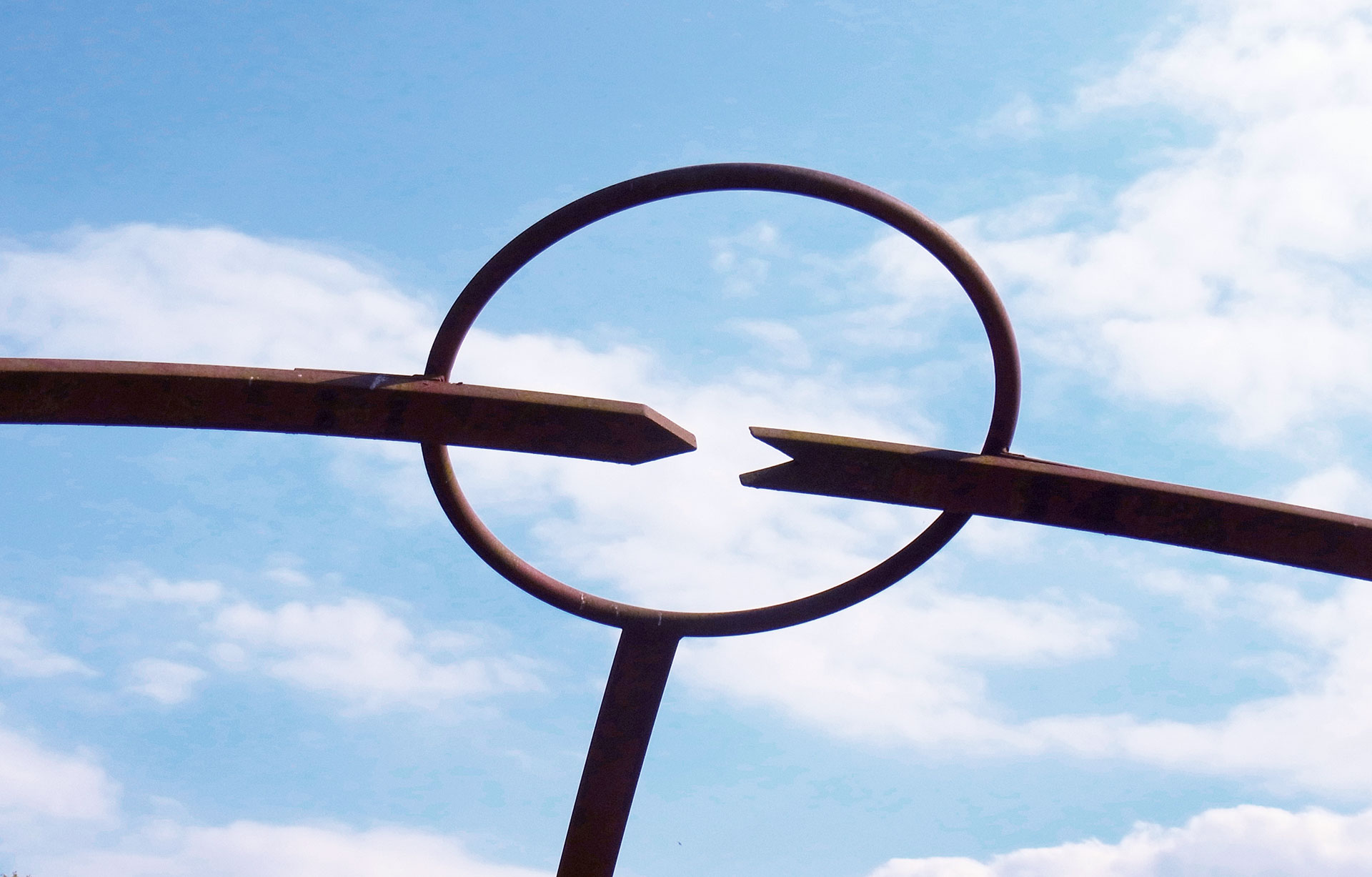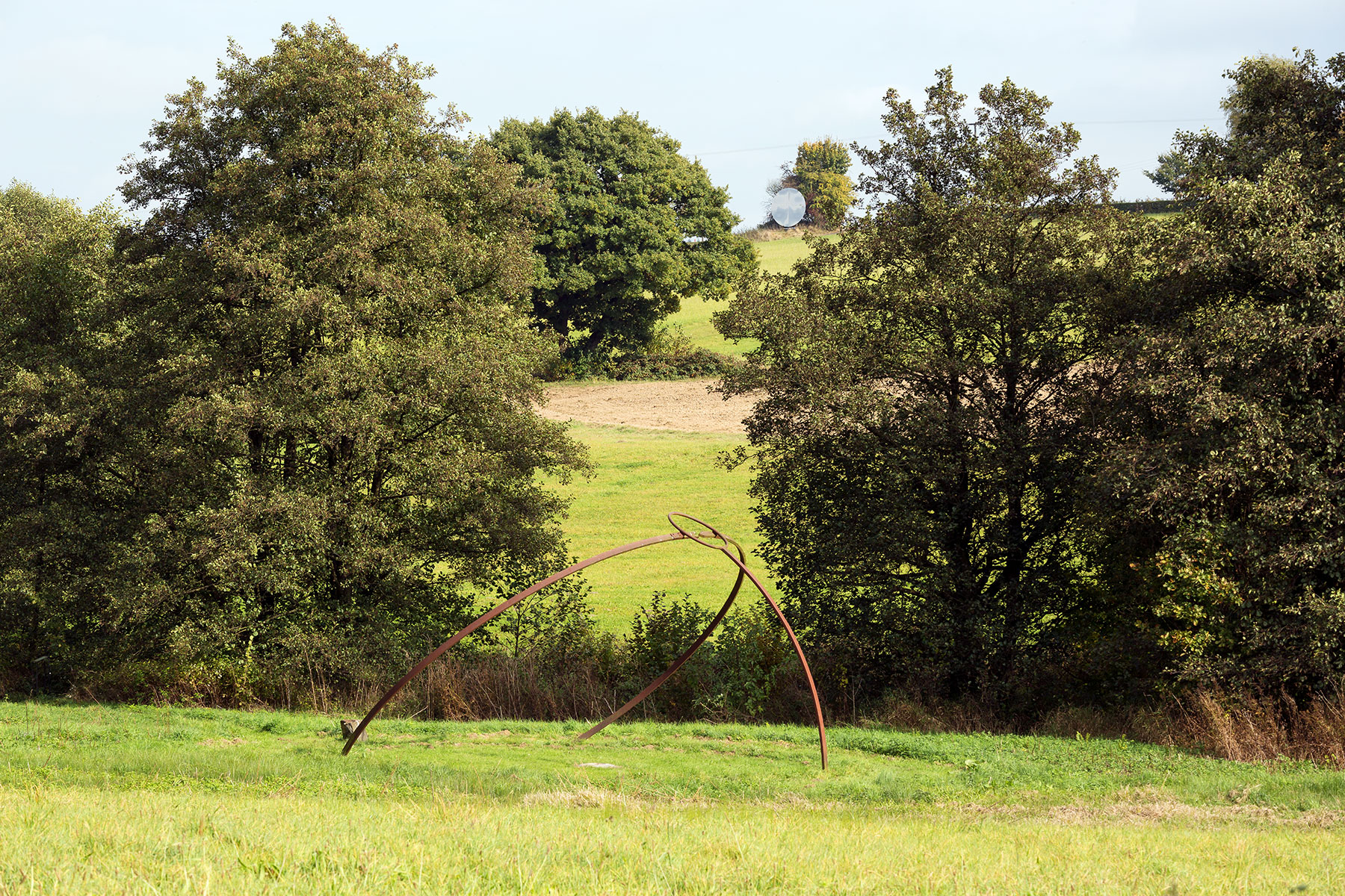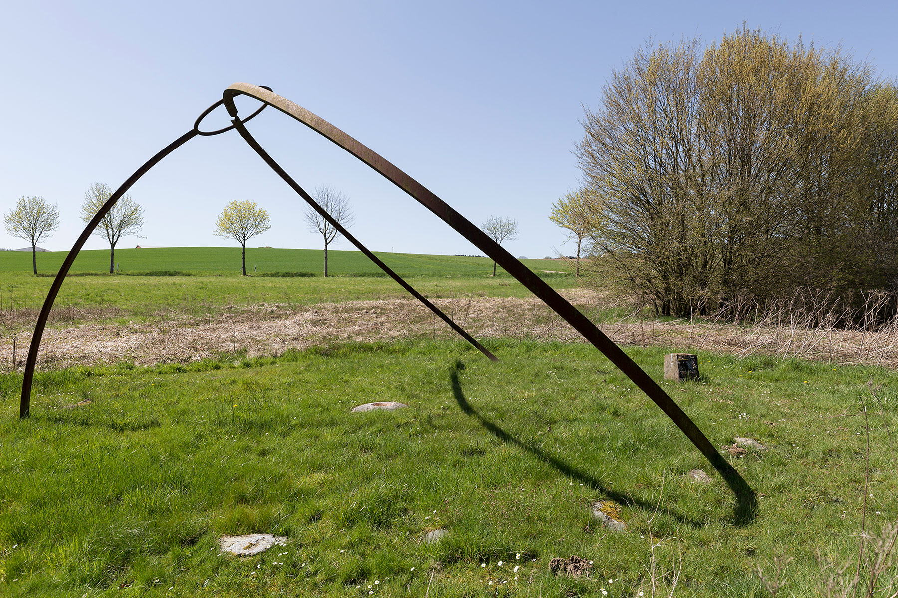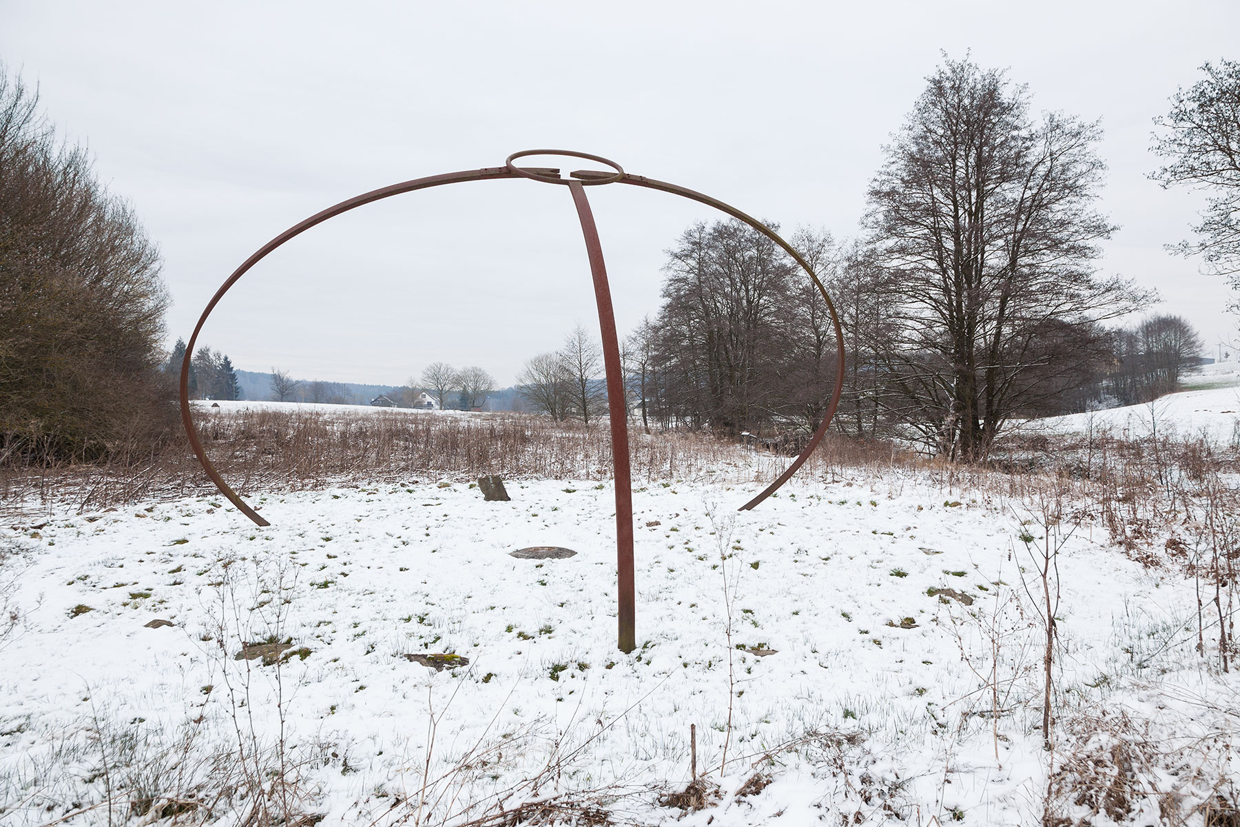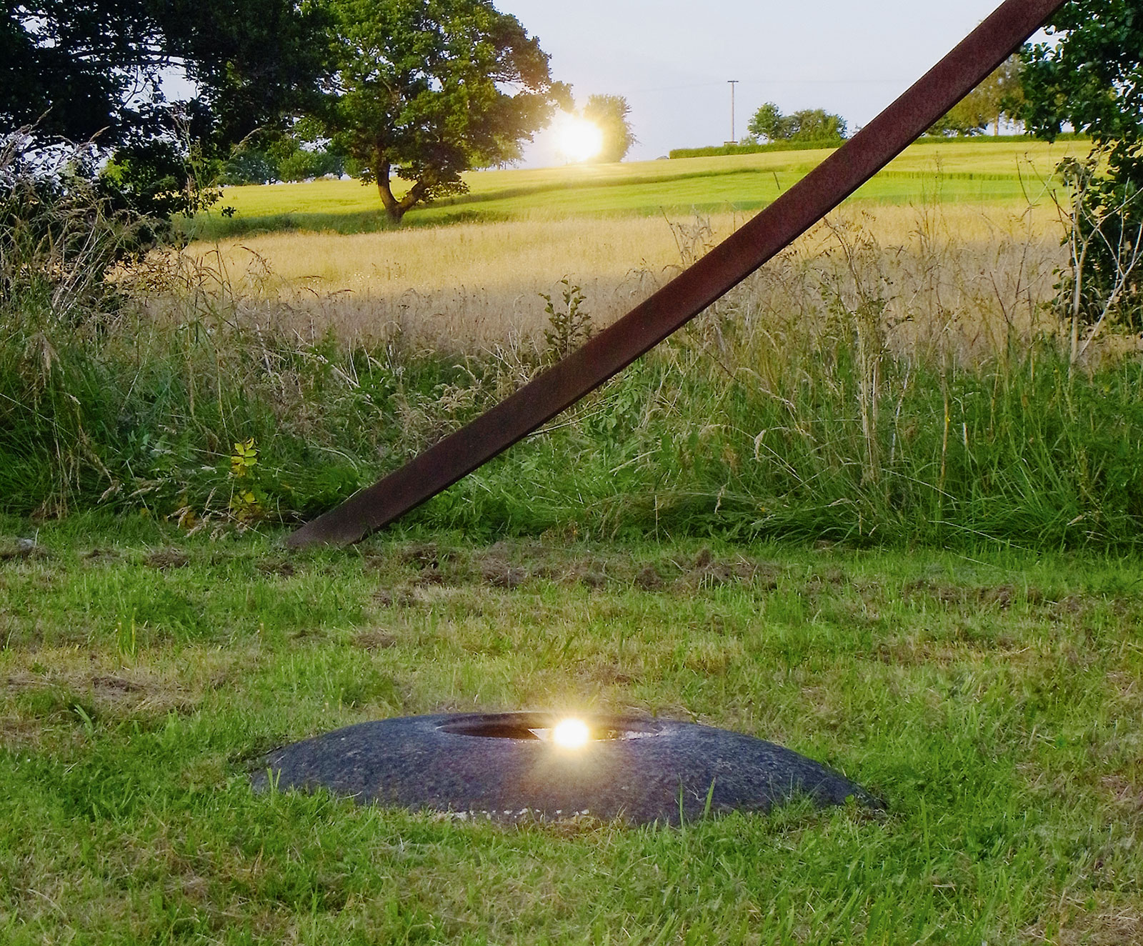 Der Steinkreis im Tal mit einem Durchmesser von ca. 8 m, wird aus zwei Dutzend kleinerer und größerer Steine gebildet, die in der Wiese eingebettet sind. Nur einer von ihnen, der nördlichste, ragt klar aus der Wiesenebene heraus und markiert ein Ende der Meridianlinie des Kunstwerks, die über das Zentrum des Steinkreises weiter nach Süden verläuft. Im Zentrum des Kreises befindet sich ein runder Jura-Stein mit einer kreisförmigen Vertiefung in seiner Mitte, die oft mit Regenwasser gefüllt ist. Aus dem südlichsten Punkt des Steinkreises ragt senkrecht ein Stahlbogensegment empor, an dessen Ende sich ein Stahlring befindet. Der große zweiteilige Stahlbogen steigt im Nordosten des Steinkreises aus der Erdoberfläche heraus und verschwindet wieder im Nordwesten des Kreises im Wiesengrund. Der Stahlbogen ist so berechnet und orientiert, dass er die Sonnenbahn zur Sommersonnenwende wiedergibt, wobei die Bewegung des Schattens, den der Bogen wirft, eine präzise Choreographie nach astronomischen Gesetzmäßigkeiten vollzieht.