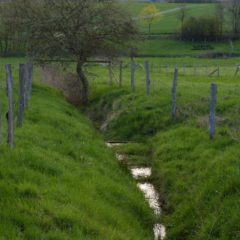 Man kann Riesiges in die Natur stellen, um sich als Künstler zu behaupten. Mitleid mit dem, der dies nötig hat. Man kann artifiziöse Strukturen konstruieren, um sie der Natur überzustülpen, solche, die die Natur gleichsam domestizieren. Wie wenig Einblick in die Komplexität der Natur und in die in ihr waltende Ordnung ist dem zu attestieren, der sich dies zum Ziel gesetzt hat. Und, man kann das Naturschöne in seiner einzigartigen Weise so genießen, schätzen und akzeptieren, daß Kunst dort konsequenterweise keinen Platz hat. Wie verhält sich angesichts dieser vertrackten Ausgangssituation nun ein Künstler, soll und will er ein Werk von sich in die Natur geben, was eben auch bedeutet, daß er in die Natur eingreift? Vilém Flusser sieht das Nehmen eines Stockes aus der Natur schon als den der ersten Akt des Menschen, sich die Natur untertan zu machen. Dem finalen Punkt, den, in dem die Natur in Funktion des Menschen funktioniert, nähern wir uns so gesehen seit Menschengedenken. Ob dieser je erreicht werden wird, ob dies überhaupt zu wünschen ist – wer weiß? Wandert man nun durch das ›Tal‹ bei Hasselbach/Werkhausen im Westerwald, in das Erwin Wortelkamp Künstler gebeten hat, Werke von sich zu platzieren, zu installieren, zu integrieren ?, so begegnet man weniger denn beiläufig – also nicht monumental den Blick richtend, aber auch nicht gerade zufällig – zweimal Werken von Paul Isenrath. Man hat sich gerade daran gewöhnt, den Blick nicht nur, auf Naturschönheit konditioniert, über Weiden und Auen schweifen zu lassen, sondern auch darauf eingestellt, Knicke in Zaun und Schneisen, vertikale Marken und Gerätschaften als Kunst in der Natur zu akzeptieren, da nimmt man, vielleicht durstig des Sommers, einen Wasserspiegel wahr. Eine Pfütze wahr – aber eine in Dreiecksform, gleichschenklig scheinend und auch noch tetraederhaft dreidimensional und stahlgewandet? Wasser fließt über den spitzen Winkel des Dreiecks, Wasser eines Rinnsals von der Weide. Die Basisfront des Dreiecks dient gleich einem kleinen Staudamm dem Halten des Wassers. In einer Ackerfurche befindet sich das Ganze. Die drei Seiten des Dreiecks liegen – wie könnte es anders sein? – in einer waagerechten Ebene. Es sind die Sichtkanten der in die Erde eingelassenen Stahlbleche. Wir stehen vor einem horizontalen Moment in der Hügellandschaft des Westerwaldes. Paul Isenrath hat eine Staupfütze in die Natur gegeben. Lediglich das Auge vermag über sie zu stolpern. Denn die Form – nur sie, nichts anderes – ist der Natur hier fremd. Das Phänomen, Wasser zu stauen und so einen Spiegel in der Natur zu bilden, in den sich der Himmel und die Wolken eben einspiegeln, ist der Natur entnommen. So tritt Blau ins Grün der Weiden, so Wolkenzüge an die Grasnarbe – hier in der geometrischen Dreiecksform. Der Künstler, der Mensch, Paul Isenrath, bescheidet sich damit, visuell, qua Form, ein Werk dem Formrepertoire der Natur einzufügen. Wenig – in der Tat. Kaum augenfällig – für wahr. Aber signifikant – was mehr ist zu erreichen?