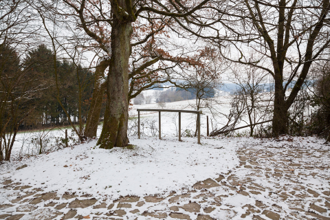 Der höchste Punkt des zum ›Tal‹ gehörenden Geländes zeichnet sich bereits durch besondere Gegebenheiten aus, die natürlich wie künstlich sind. Da gibt es einen alleinstehenden, von weitem sichtbaren alten Baum und einen Durchfahrtsweg. Beide integriert und involviert Wolfgang Luy symbolhaft in seine Arbeit. Gedanklich wie formal sind sie Schlüsselelemente, an deren Bedeutungen Luy anschließt und um die er im wahrsten Sinne des Wortes Kreisfiguren legt. Dieselben sind real und imaginär und durchdringen sich mit ihren jeweils anders gelagerten Zentren und Achsen gegenseitig. Das Kunstwerk ist kaum als solches auszumachen, will als dieses allein auch nicht verstanden werden. Vielmehr liefert es Angebote, die den Betrachter zum Akteur werden lassen. Er wird, ohne es möglicherweise vorerst zu bemerken, zum ebenfalls thematisierten Bestandteil der Skulptur. Diese ist als ein Platz mit unterschiedlichen Bedingungen und Erlebnishorizonten ausgewiesen. Die Möglichkeit, auf die plastischen Denkvorgaben zu reagieren, sie aufzugreifen, weiterzuspinnen und auf sich bezogen zu erfahren, steht jedem frei.